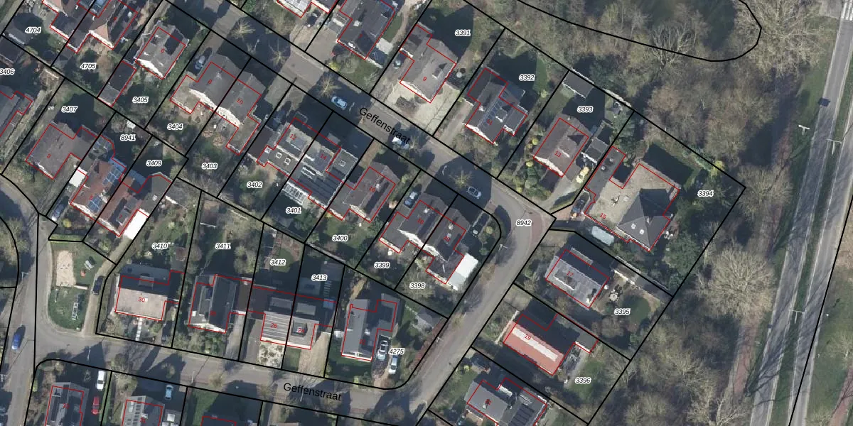Gebruik de zoekbalk of klik op een perceel voor informatie over de adressen binnen dit perceel.