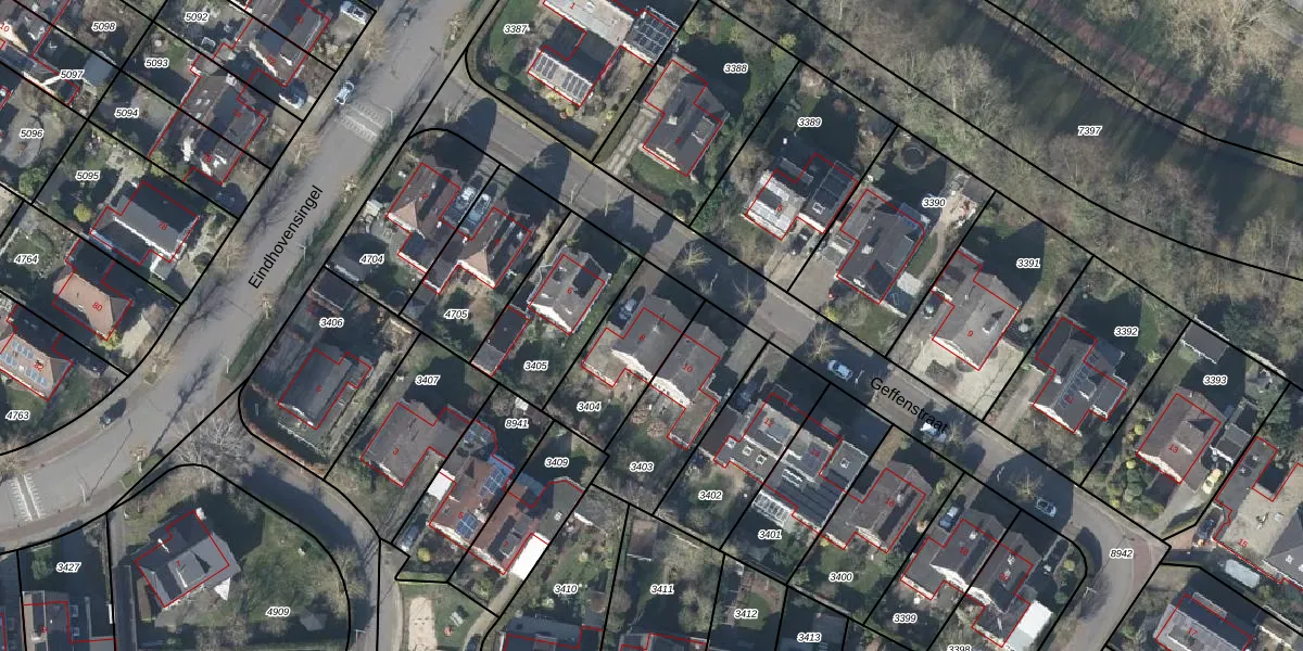 Gebruik de zoekbalk of klik op een perceel voor informatie over de adressen binnen dit perceel.