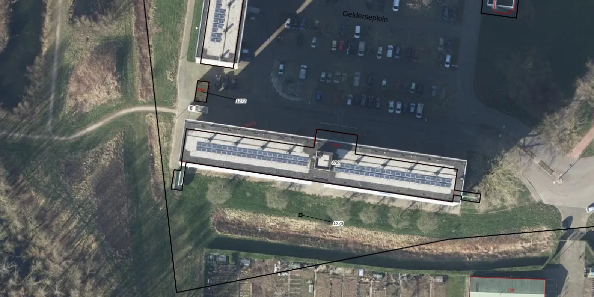 Het perceel waarop Gelderseplein 1-J staat heeft een oppervlakte van 1170 m². Dit is een zeer groot perceel. De perceeloppervlakte wordt geregistreerd door het Kadaster. Gedetailleerde informatie over de maten van dit perceel kunt u vinden in het rapport Kadastrale kaart met maatvoering van Gelderseplein 1-J.