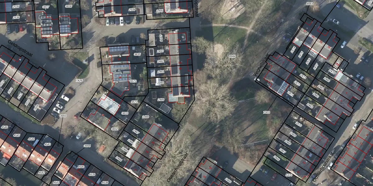 Gebruik de zoekbalk of klik op een perceel voor informatie over de adressen binnen dit perceel.