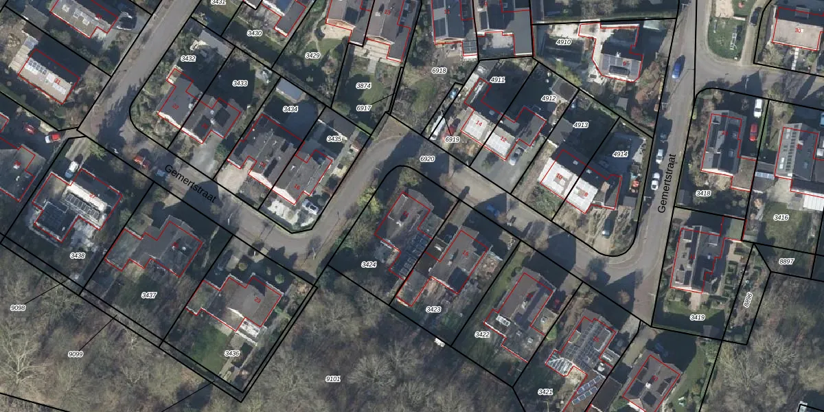 Gebruik de zoekbalk of klik op een perceel voor informatie over de adressen binnen dit perceel.