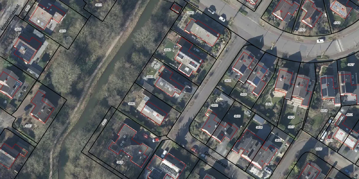 Gebruik de zoekbalk of klik op een perceel voor informatie over de adressen binnen dit perceel.