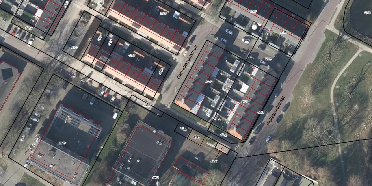 Het perceel waarop Genadekruidstraat 11 staat heeft een oppervlakte van 918 m². Dit is een groot perceel. De perceeloppervlakte wordt geregistreerd door het Kadaster. Gedetailleerde informatie over de maten van dit perceel kunt u vinden in het rapport Kadastrale kaart met maatvoering van Genadekruidstraat 11.