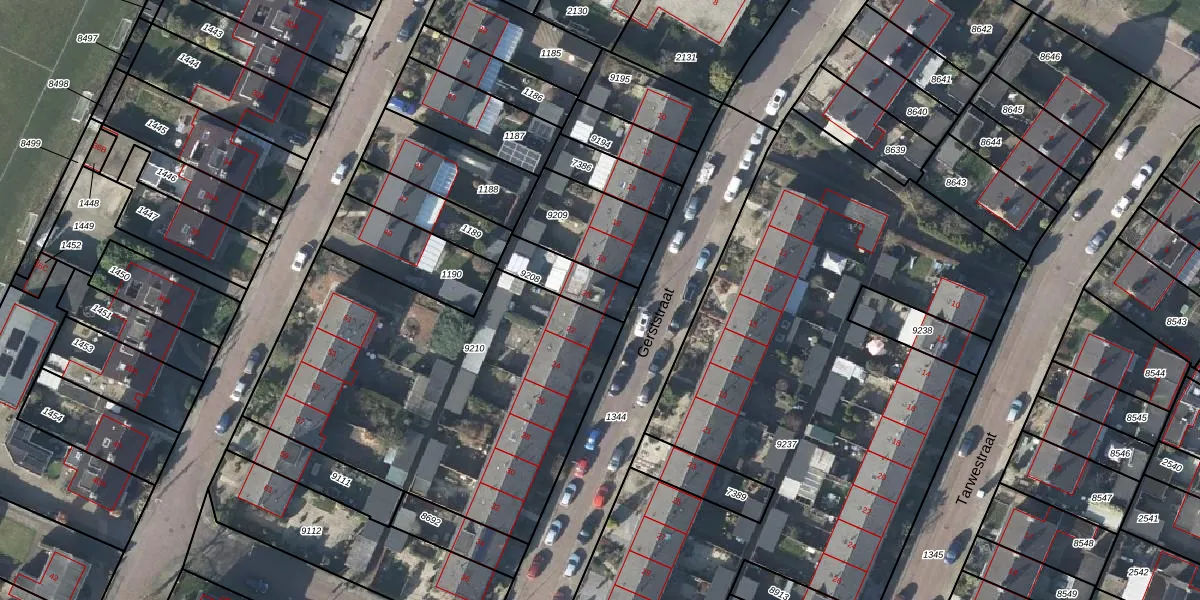 Gebruik de zoekbalk of klik op een perceel voor informatie over de adressen binnen dit perceel.