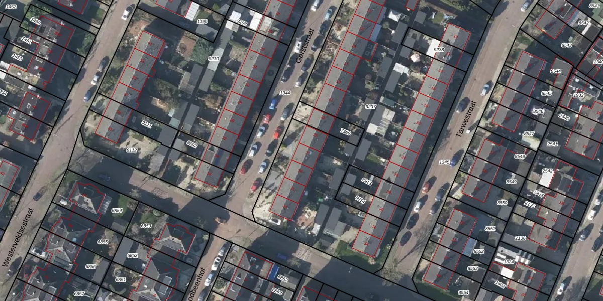 Het perceel waarop Gerststraat 27 staat heeft een oppervlakte van 4046 m². Dit is een zeer groot perceel. De perceeloppervlakte wordt geregistreerd door het Kadaster. Gedetailleerde informatie over de maten van dit perceel kunt u vinden in het rapport Kadastrale kaart met maatvoering van Gerststraat 27.