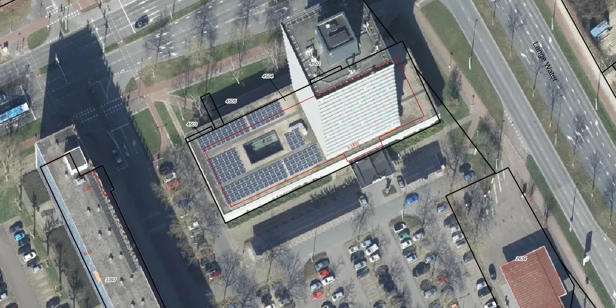 Het perceel waarop Gildemeestersplein 1007 staat heeft een oppervlakte van 2238 m². Dit is een zeer groot perceel. De perceeloppervlakte wordt geregistreerd door het Kadaster. Gedetailleerde informatie over de maten van dit perceel kunt u vinden in het rapport Kadastrale kaart met maatvoering van Gildemeestersplein 1007.
