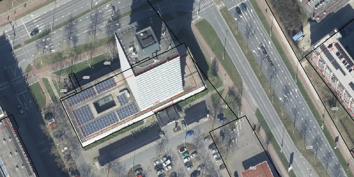 Het perceel waarop Gildemeestersplein 1605 staat heeft een oppervlakte van 2238 m². Dit is een zeer groot perceel. De perceeloppervlakte wordt geregistreerd door het Kadaster. Gedetailleerde informatie over de maten van dit perceel kunt u vinden in het rapport Kadastrale kaart met maatvoering van Gildemeestersplein 1605.