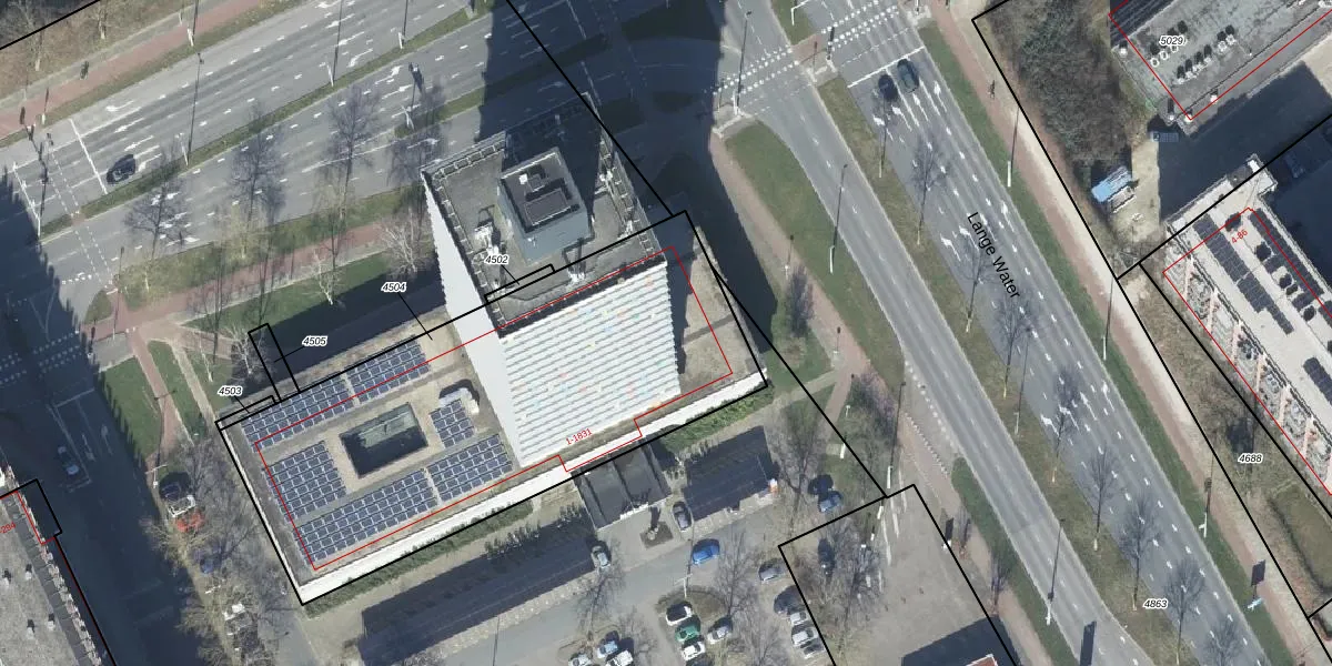 Het perceel waarop Gildemeestersplein 1715 staat heeft een oppervlakte van 2238 m². Dit is een zeer groot perceel. De perceeloppervlakte wordt geregistreerd door het Kadaster. Gedetailleerde informatie over de maten van dit perceel kunt u vinden in het rapport Kadastrale kaart met maatvoering van Gildemeestersplein 1715.