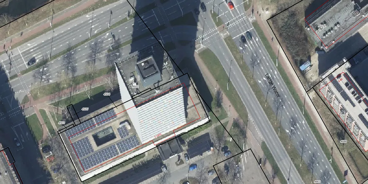 Het perceel waarop Gildemeestersplein 1825 staat heeft een oppervlakte van 2238 m². Dit is een zeer groot perceel. De perceeloppervlakte wordt geregistreerd door het Kadaster. Gedetailleerde informatie over de maten van dit perceel kunt u vinden in het rapport Kadastrale kaart met maatvoering van Gildemeestersplein 1825.