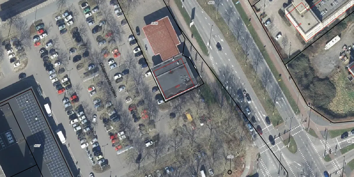 Het perceel waarop Gildemeestersplein 1855 staat heeft een oppervlakte van 1690 m². Dit is een zeer groot perceel. De perceeloppervlakte wordt geregistreerd door het Kadaster. Gedetailleerde informatie over de maten van dit perceel kunt u vinden in het rapport Kadastrale kaart met maatvoering van Gildemeestersplein 1855.