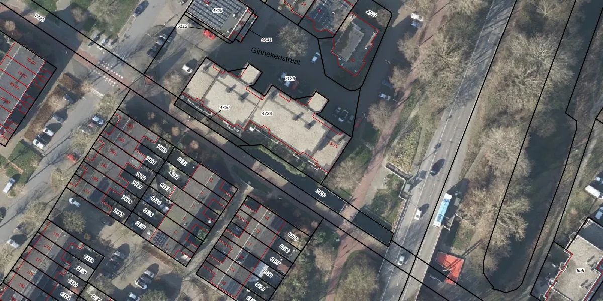 Het perceel waarop Ginnekenstraat 41 staat heeft een oppervlakte van 1077 m². Dit is een zeer groot perceel. De perceeloppervlakte wordt geregistreerd door het Kadaster. Gedetailleerde informatie over de maten van dit perceel kunt u vinden in het rapport Kadastrale kaart met maatvoering van Ginnekenstraat 41.