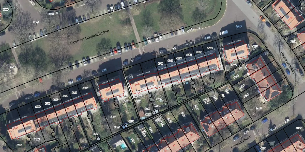 Goeman Borgesiusplein 23 is gelegen op kadastraal perceel AHM01N8330. Deze kadastrale aanduiding is uniek en wordt gebruikt door het Kadaster om eigendomsrechten en andere zakelijke rechten vast te leggen. Het perceel maakt onderdeel uit van de kadastrale gemeente Arnhem.
