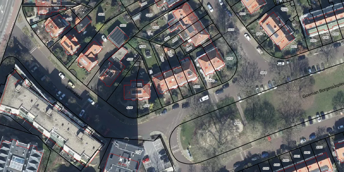 Het perceel waarop Goeman Borgesiusplein 26 staat heeft een oppervlakte van 220 m². Dit is een middelgroot perceel. De perceeloppervlakte wordt geregistreerd door het Kadaster. Gedetailleerde informatie over de maten van dit perceel kunt u vinden in het rapport Kadastrale kaart met maatvoering van Goeman Borgesiusplein 26.
