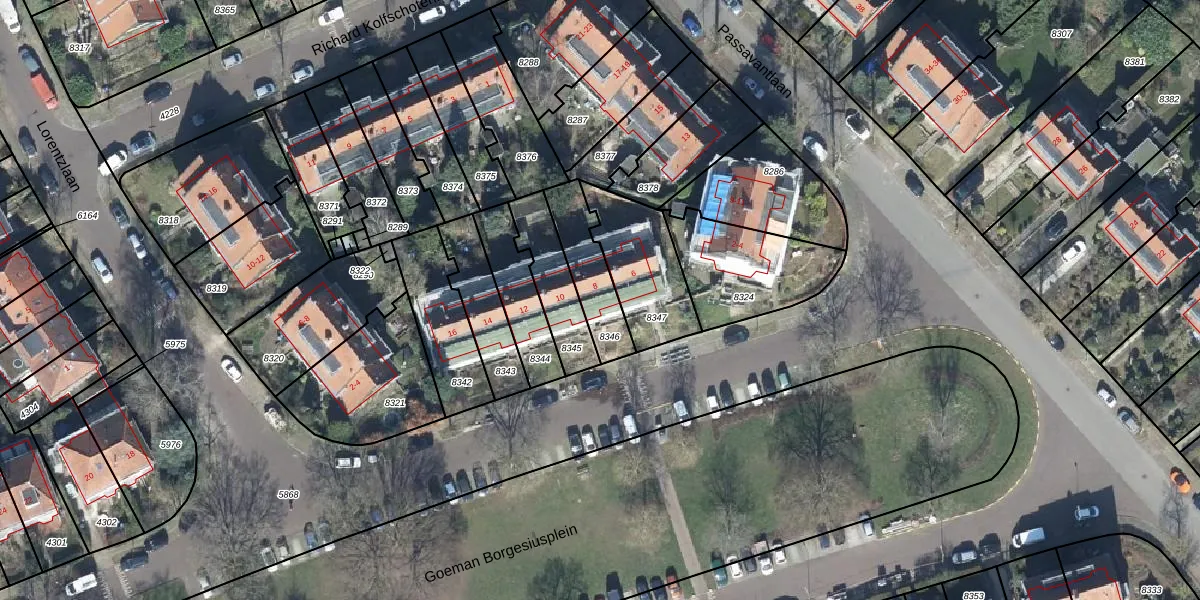 Goeman Borgesiusplein 8 is gelegen op kadastraal perceel AHM01N8346. Deze kadastrale aanduiding is uniek en wordt gebruikt door het Kadaster om eigendomsrechten en andere zakelijke rechten vast te leggen. Het perceel maakt onderdeel uit van de kadastrale gemeente Arnhem.