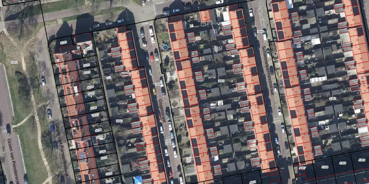 Het perceel waarop Gogelstraat 13 staat heeft een oppervlakte van 4505 m². Dit is een zeer groot perceel. De perceeloppervlakte wordt geregistreerd door het Kadaster. Gedetailleerde informatie over de maten van dit perceel kunt u vinden in het rapport Kadastrale kaart met maatvoering van Gogelstraat 13.