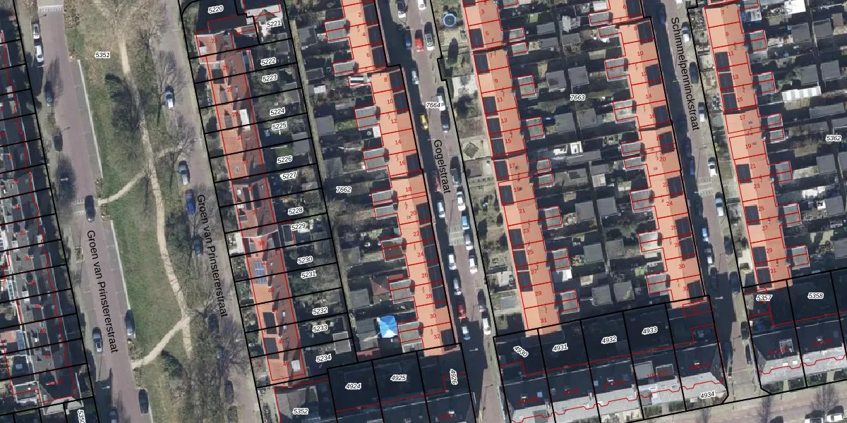 Het perceel waarop Gogelstraat 20 staat heeft een oppervlakte van 2095 m². Dit is een zeer groot perceel. De perceeloppervlakte wordt geregistreerd door het Kadaster. Gedetailleerde informatie over de maten van dit perceel kunt u vinden in het rapport Kadastrale kaart met maatvoering van Gogelstraat 20.