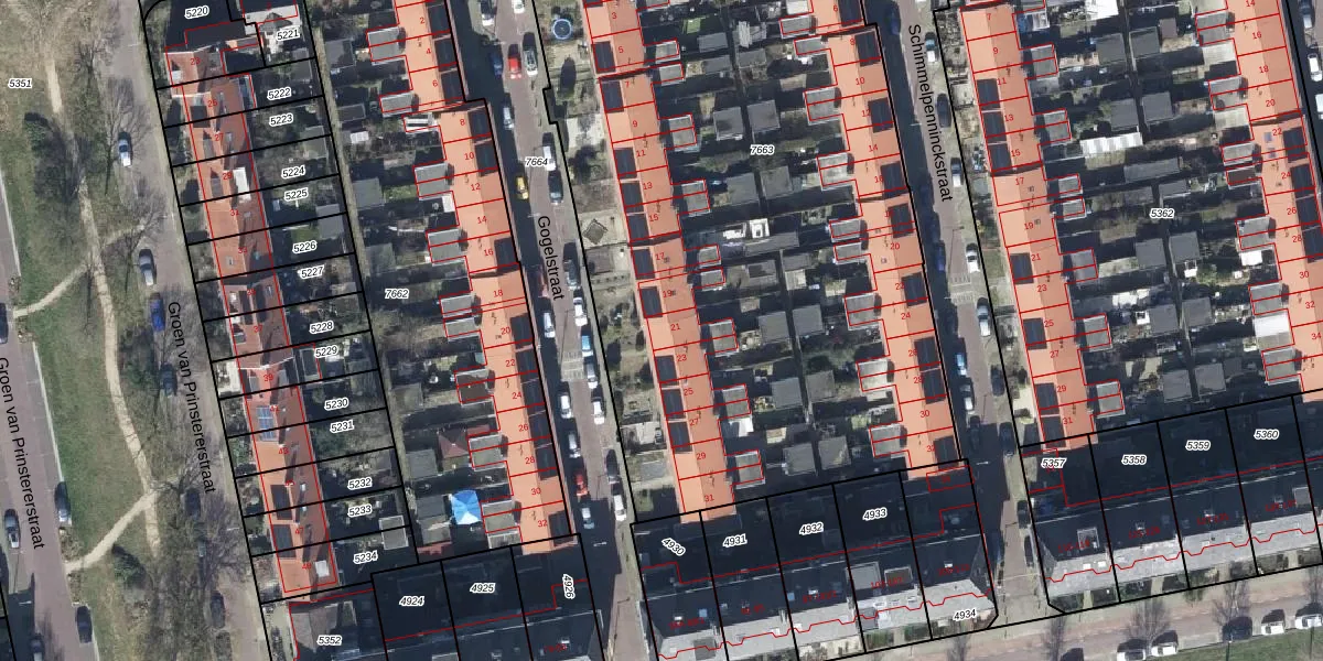 Het perceel waarop Gogelstraat 21 staat heeft een oppervlakte van 4505 m². Dit is een zeer groot perceel. De perceeloppervlakte wordt geregistreerd door het Kadaster. Gedetailleerde informatie over de maten van dit perceel kunt u vinden in het rapport Kadastrale kaart met maatvoering van Gogelstraat 21.