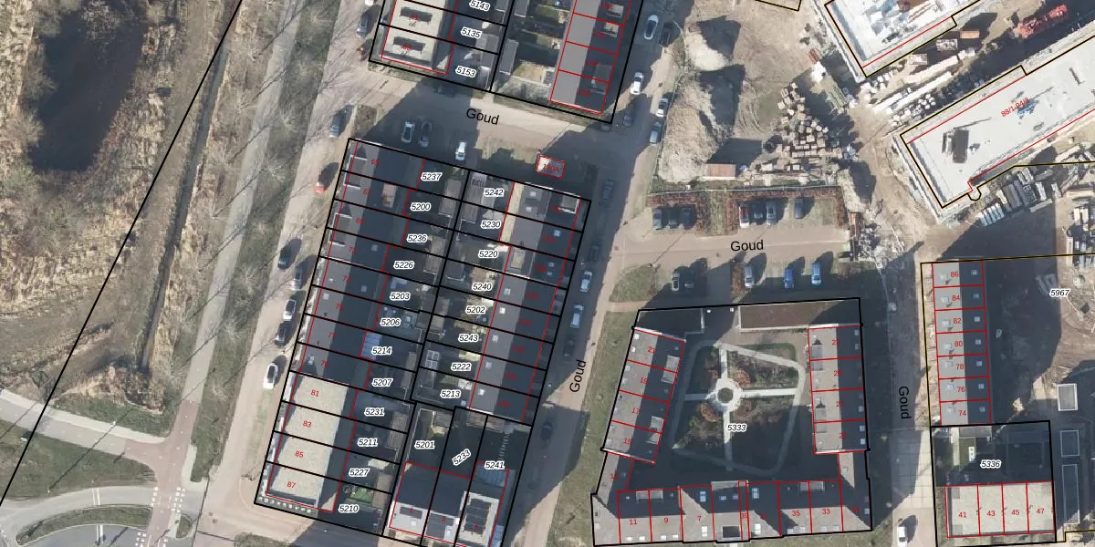 Gebruik de zoekbalk of klik op een perceel voor informatie over de adressen binnen dit perceel.