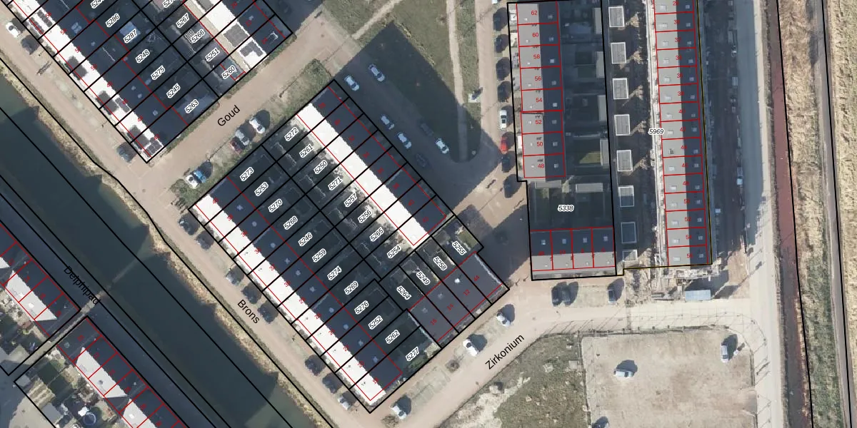 Het perceel waarop Goud 42 staat heeft een oppervlakte van 143 m². Dit is een middelgroot perceel. De perceeloppervlakte wordt geregistreerd door het Kadaster. Gedetailleerde informatie over de maten van dit perceel kunt u vinden in het rapport Kadastrale kaart met maatvoering van Goud 42.