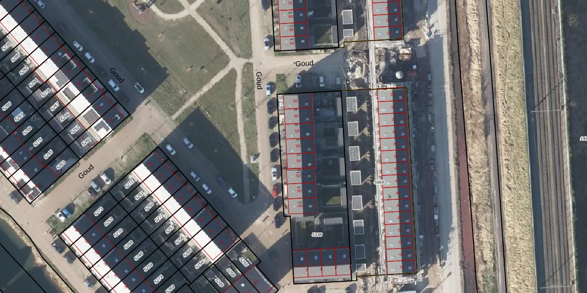 Goud 56 is gelegen op kadastraal perceel AHM05AF5338. Deze kadastrale aanduiding is uniek en wordt gebruikt door het Kadaster om eigendomsrechten en andere zakelijke rechten vast te leggen. Het perceel maakt onderdeel uit van de kadastrale gemeente Arnhem.