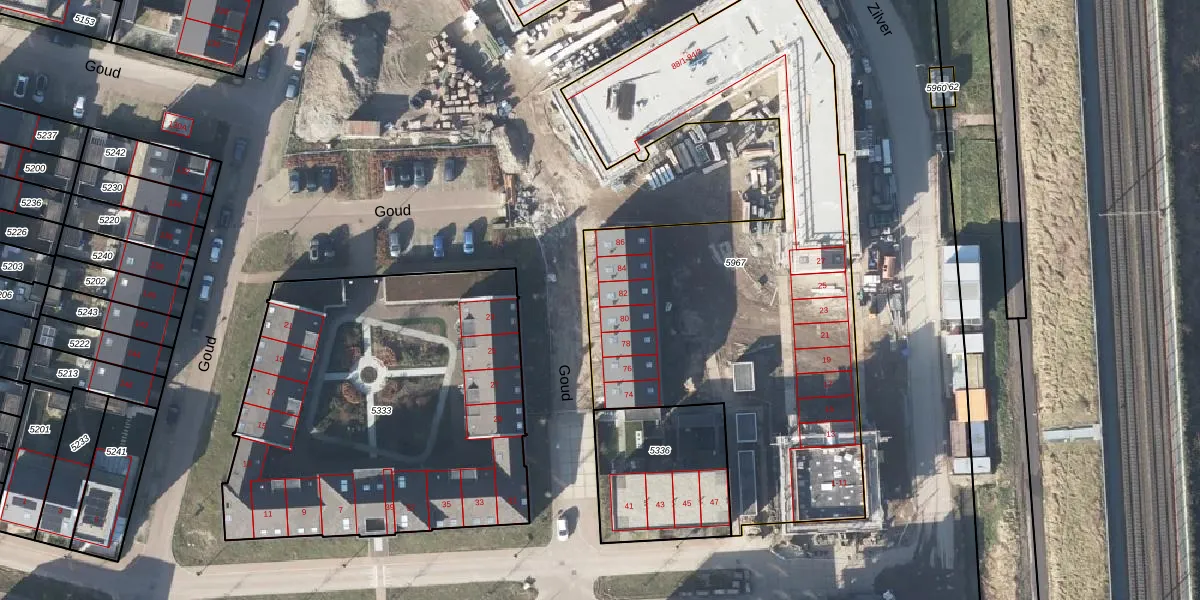 Goud 82 is gelegen op kadastraal perceel AHM05AF5967. Deze kadastrale aanduiding is uniek en wordt gebruikt door het Kadaster om eigendomsrechten en andere zakelijke rechten vast te leggen. Het perceel maakt onderdeel uit van de kadastrale gemeente Arnhem.