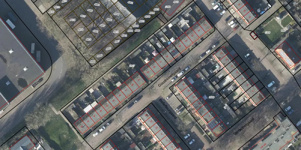 Het perceel waarop Goudreinetgaard 53 staat heeft een oppervlakte van 1843 m². Dit is een zeer groot perceel. De perceeloppervlakte wordt geregistreerd door het Kadaster. Gedetailleerde informatie over de maten van dit perceel kunt u vinden in het rapport Kadastrale kaart met maatvoering van Goudreinetgaard 53.