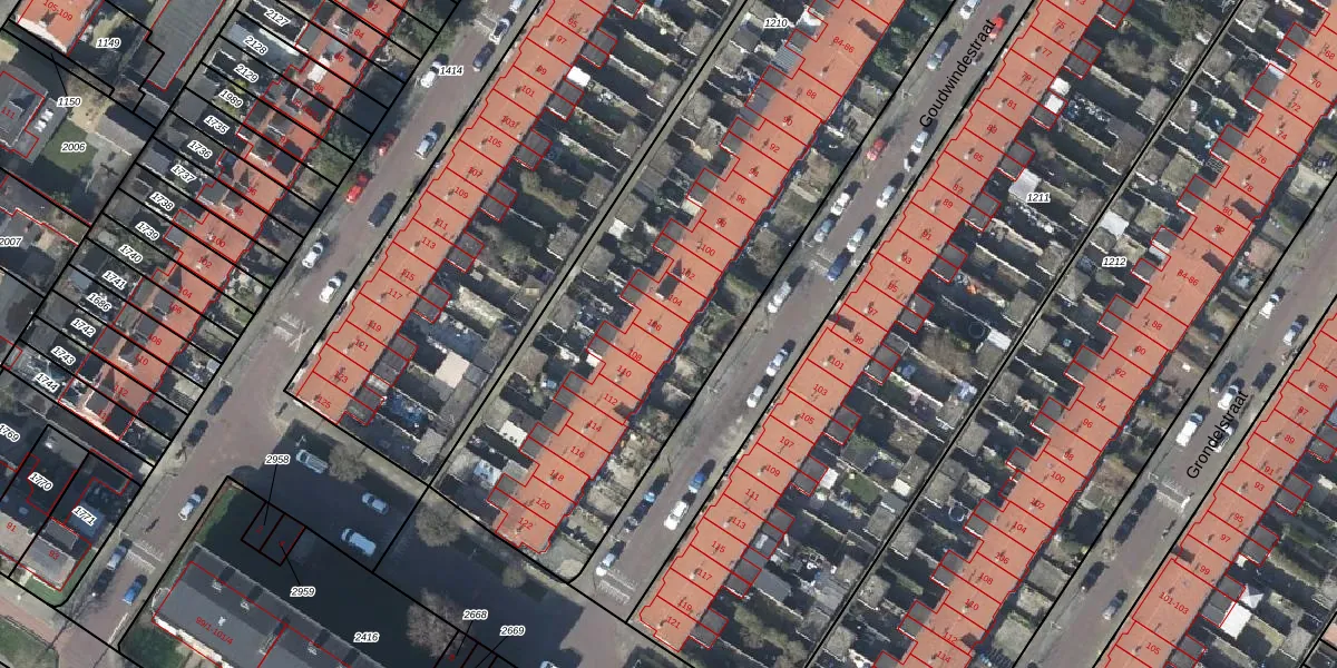 Goudwindestraat 106 is gelegen op kadastraal perceel AHM01E1210. Deze kadastrale aanduiding is uniek en wordt gebruikt door het Kadaster om eigendomsrechten en andere zakelijke rechten vast te leggen. Het perceel maakt onderdeel uit van de kadastrale gemeente Arnhem.
