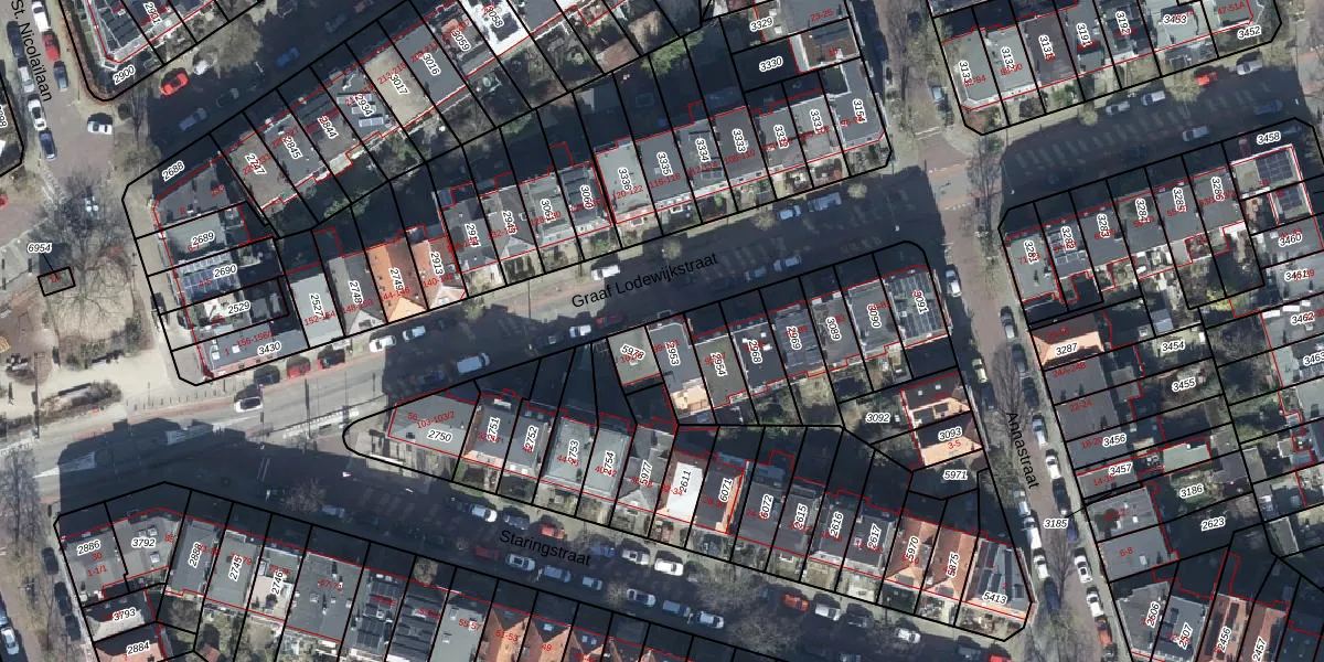 Het perceel waarop Graaf Lodewijkstraat 99 staat heeft een oppervlakte van 104 m². Dit is een middelgroot perceel. De perceeloppervlakte wordt geregistreerd door het Kadaster. Gedetailleerde informatie over de maten van dit perceel kunt u vinden in het rapport Kadastrale kaart met maatvoering van Graaf Lodewijkstraat 99.