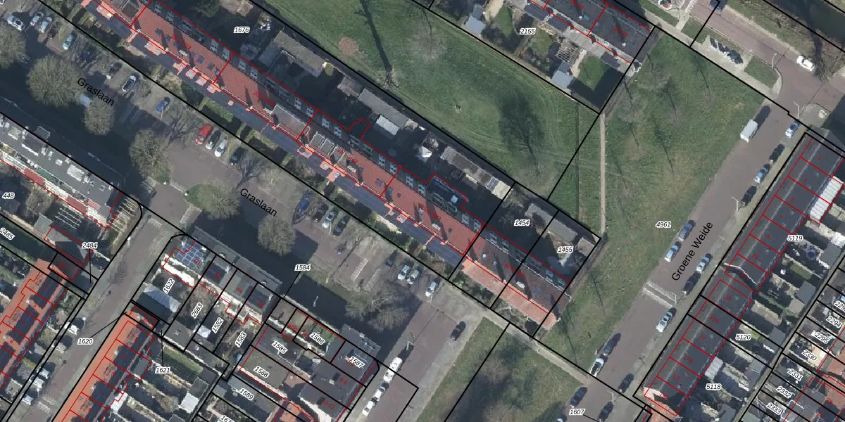 Het perceel waarop Graslaan 37-2 staat heeft een oppervlakte van 5950 m². Dit is een zeer groot perceel. De perceeloppervlakte wordt geregistreerd door het Kadaster. Gedetailleerde informatie over de maten van dit perceel kunt u vinden in het rapport Kadastrale kaart met maatvoering van Graslaan 37-2.