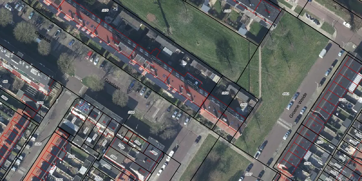 Het perceel waarop Graslaan 37-1 staat heeft een oppervlakte van 5950 m². Dit is een zeer groot perceel. De perceeloppervlakte wordt geregistreerd door het Kadaster. Gedetailleerde informatie over de maten van dit perceel kunt u vinden in het rapport Kadastrale kaart met maatvoering van Graslaan 37-1.