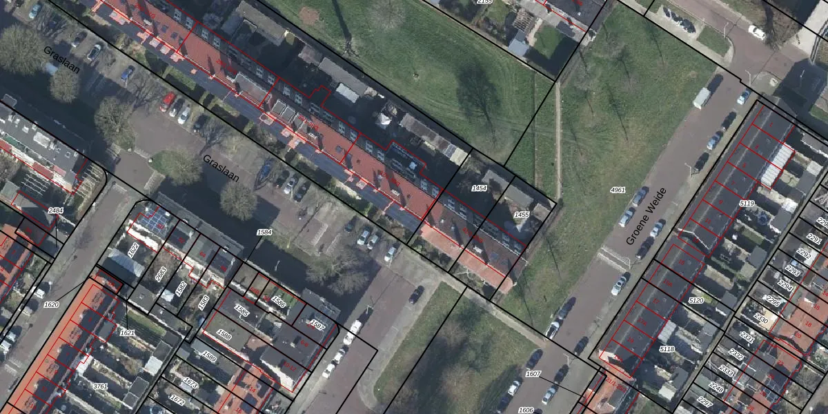Het perceel waarop Graslaan 39-1 staat heeft een oppervlakte van 5950 m². Dit is een zeer groot perceel. De perceeloppervlakte wordt geregistreerd door het Kadaster. Gedetailleerde informatie over de maten van dit perceel kunt u vinden in het rapport Kadastrale kaart met maatvoering van Graslaan 39-1.