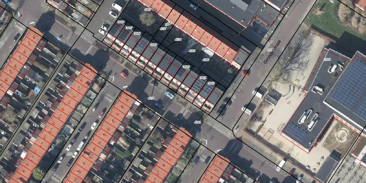 Het perceel waarop Graslaan 89 staat heeft een oppervlakte van 94 m². Dit is een klein perceel. De perceeloppervlakte wordt geregistreerd door het Kadaster. Gedetailleerde informatie over de maten van dit perceel kunt u vinden in het rapport Kadastrale kaart met maatvoering van Graslaan 89.