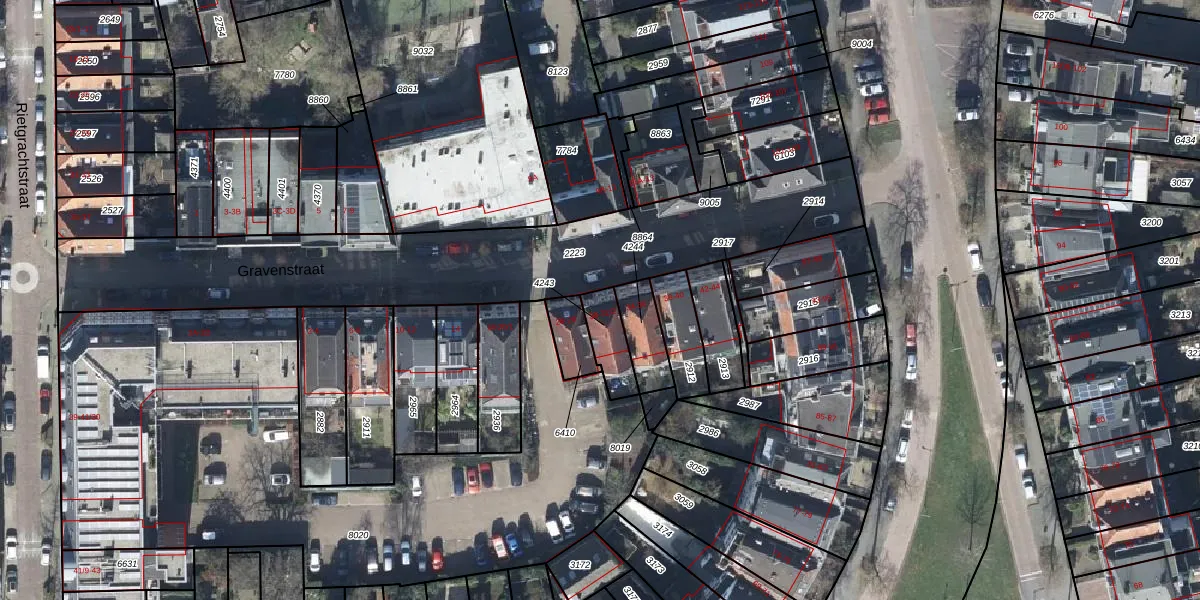 Het perceel waarop Gravenstraat 30 staat heeft een oppervlakte van 102 m². Dit is een middelgroot perceel. De perceeloppervlakte wordt geregistreerd door het Kadaster. Gedetailleerde informatie over de maten van dit perceel kunt u vinden in het rapport Kadastrale kaart met maatvoering van Gravenstraat 30.