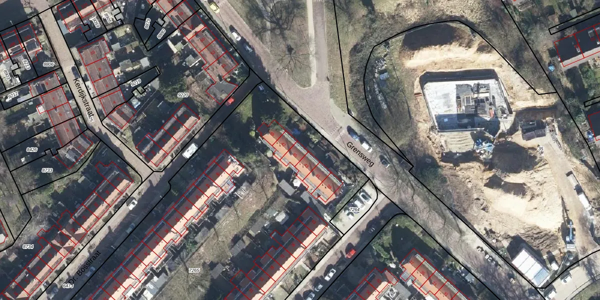 Het perceel waarop Grensweg 45 staat heeft een oppervlakte van 6645 m². Dit is een zeer groot perceel. De perceeloppervlakte wordt geregistreerd door het Kadaster. Gedetailleerde informatie over de maten van dit perceel kunt u vinden in het rapport Kadastrale kaart met maatvoering van Grensweg 45.