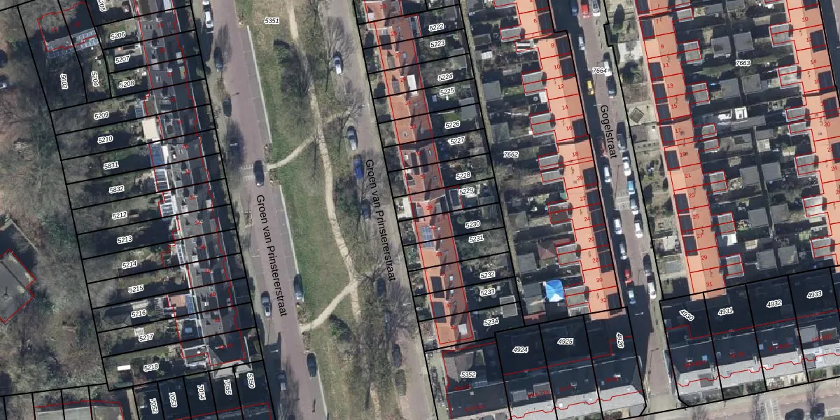 Groen van Prinstererstraat 39 is gelegen op kadastraal perceel AHM01Q5229. Deze kadastrale aanduiding is uniek en wordt gebruikt door het Kadaster om eigendomsrechten en andere zakelijke rechten vast te leggen. Het perceel maakt onderdeel uit van de kadastrale gemeente Arnhem.
