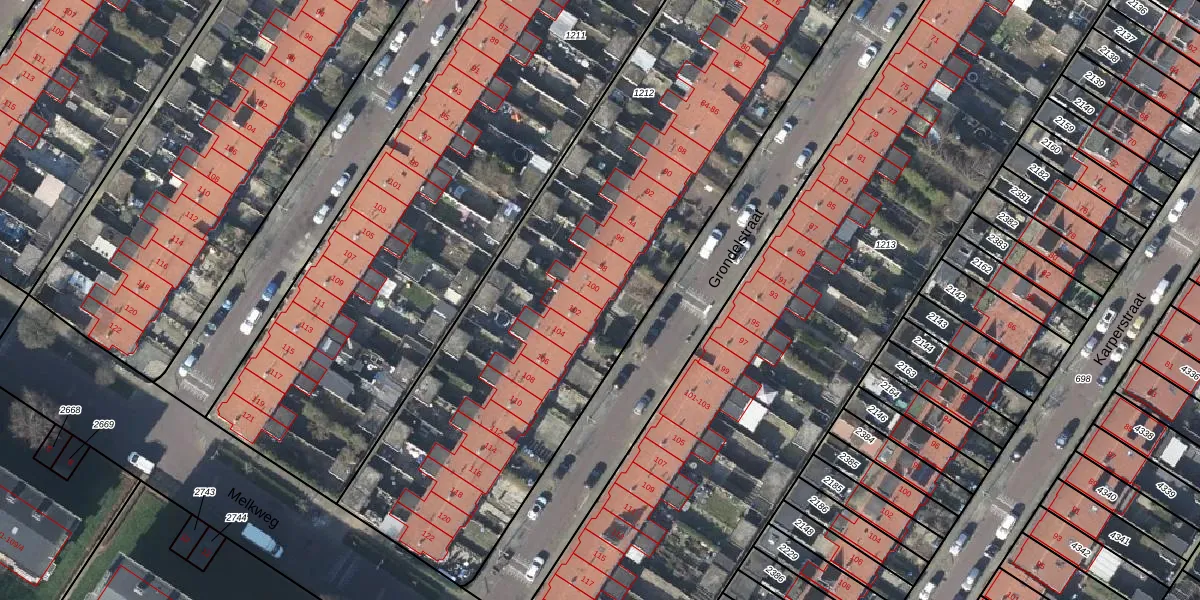 Het perceel waarop Grondelstraat 100 staat heeft een oppervlakte van 4504 m². Dit is een zeer groot perceel. De perceeloppervlakte wordt geregistreerd door het Kadaster. Gedetailleerde informatie over de maten van dit perceel kunt u vinden in het rapport Kadastrale kaart met maatvoering van Grondelstraat 100.