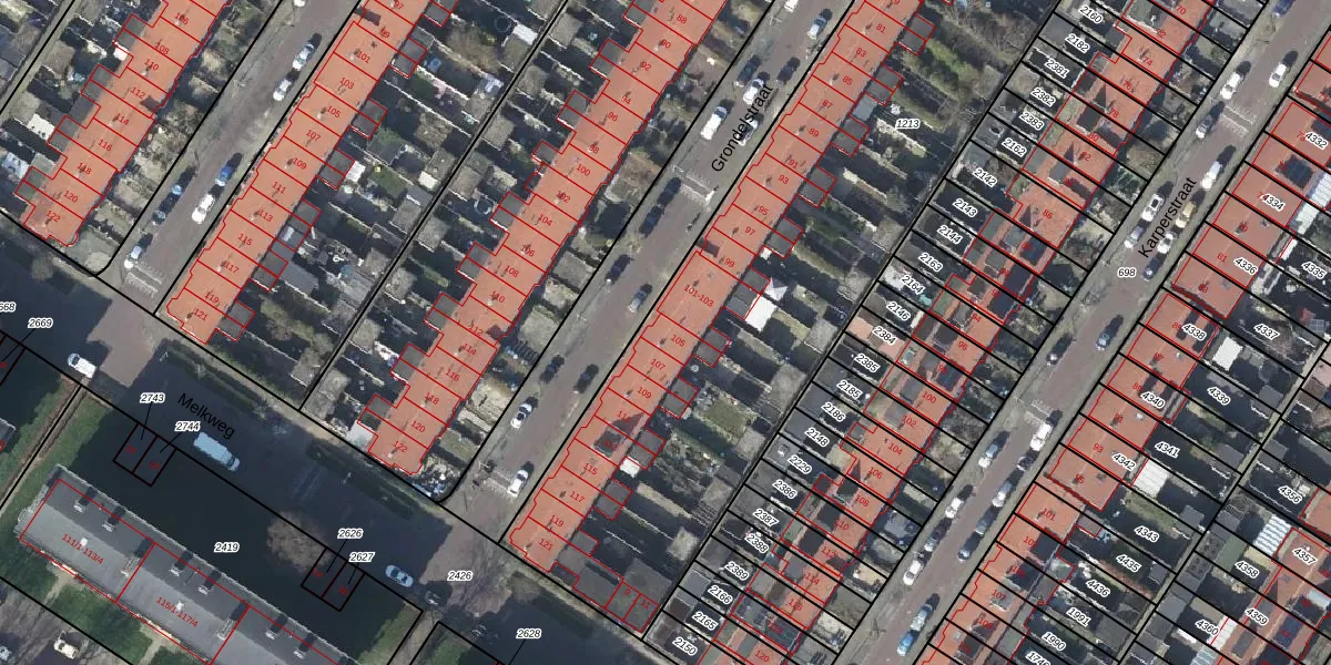 Het perceel waarop Grondelstraat 105 staat heeft een oppervlakte van 4501 m². Dit is een zeer groot perceel. De perceeloppervlakte wordt geregistreerd door het Kadaster. Gedetailleerde informatie over de maten van dit perceel kunt u vinden in het rapport Kadastrale kaart met maatvoering van Grondelstraat 105.