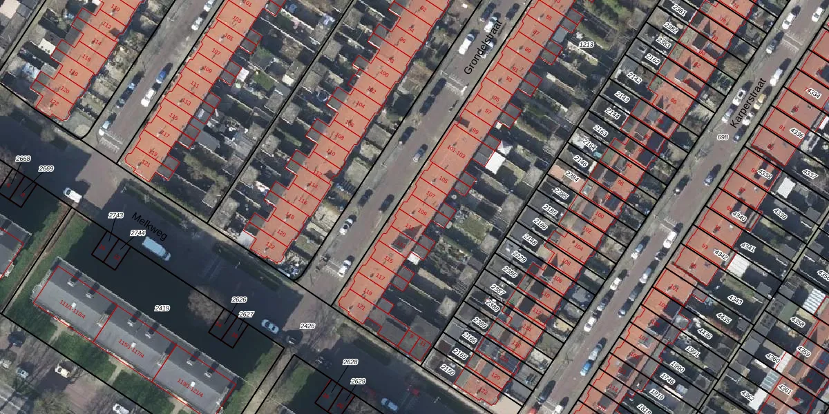 Het perceel waarop Grondelstraat 109 staat heeft een oppervlakte van 4501 m². Dit is een zeer groot perceel. De perceeloppervlakte wordt geregistreerd door het Kadaster. Gedetailleerde informatie over de maten van dit perceel kunt u vinden in het rapport Kadastrale kaart met maatvoering van Grondelstraat 109.
