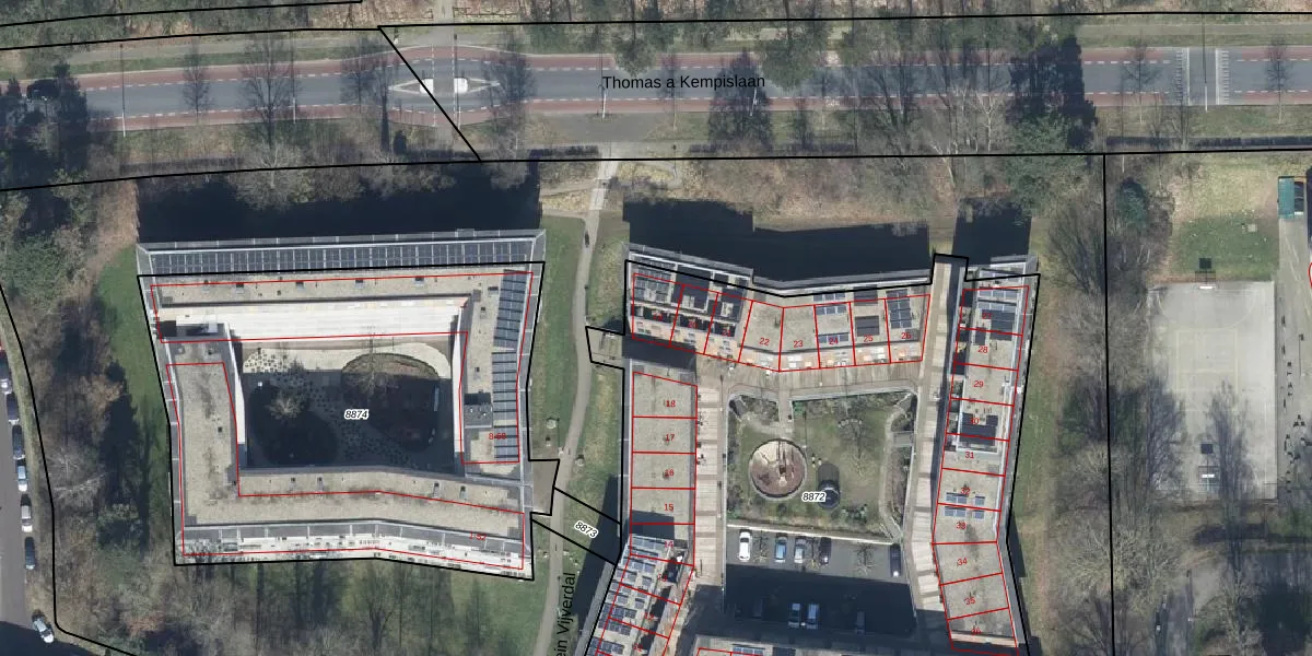 Groot Vijverdal 19 is gelegen op kadastraal perceel AHM01C8872. Deze kadastrale aanduiding is uniek en wordt gebruikt door het Kadaster om eigendomsrechten en andere zakelijke rechten vast te leggen. Het perceel maakt onderdeel uit van de kadastrale gemeente Arnhem.
