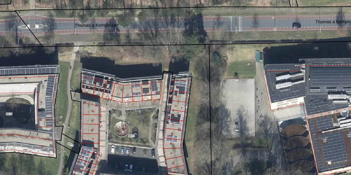 Het perceel waarop Groot Vijverdal 27 staat heeft een oppervlakte van 4550 m². Dit is een zeer groot perceel. De perceeloppervlakte wordt geregistreerd door het Kadaster. Gedetailleerde informatie over de maten van dit perceel kunt u vinden in het rapport Kadastrale kaart met maatvoering van Groot Vijverdal 27.