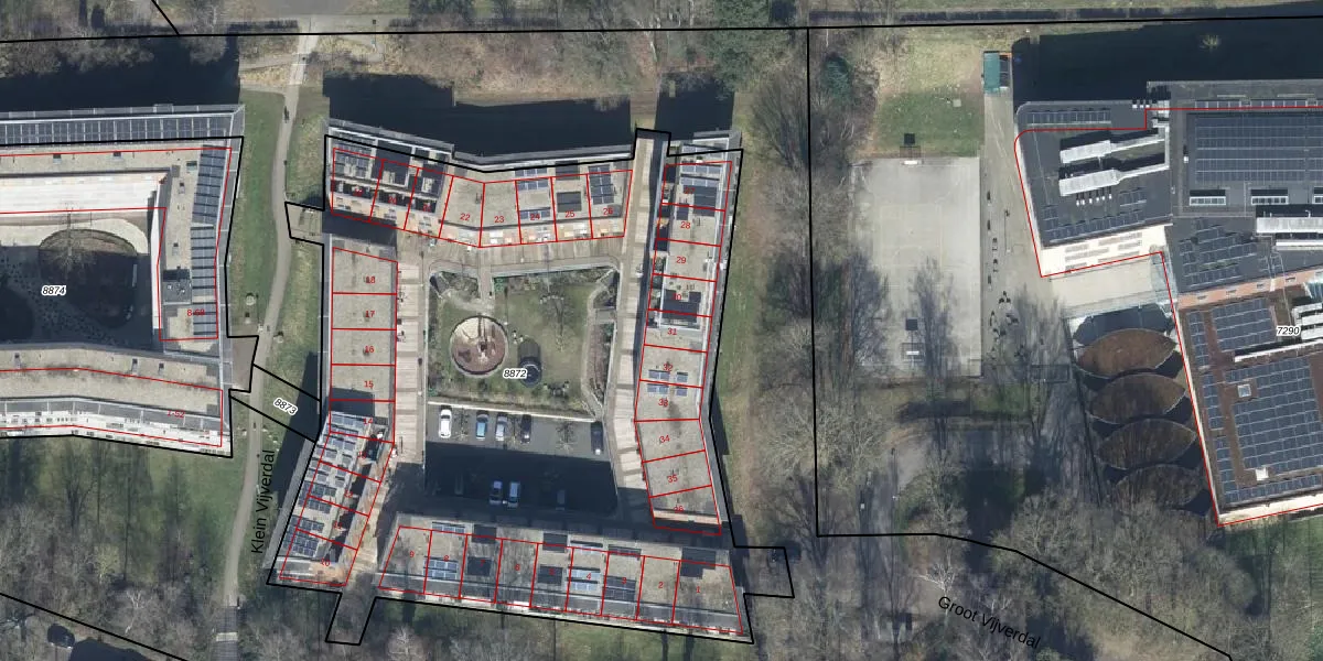 Het perceel waarop Groot Vijverdal 31 staat heeft een oppervlakte van 4550 m². Dit is een zeer groot perceel. De perceeloppervlakte wordt geregistreerd door het Kadaster. Gedetailleerde informatie over de maten van dit perceel kunt u vinden in het rapport Kadastrale kaart met maatvoering van Groot Vijverdal 31.