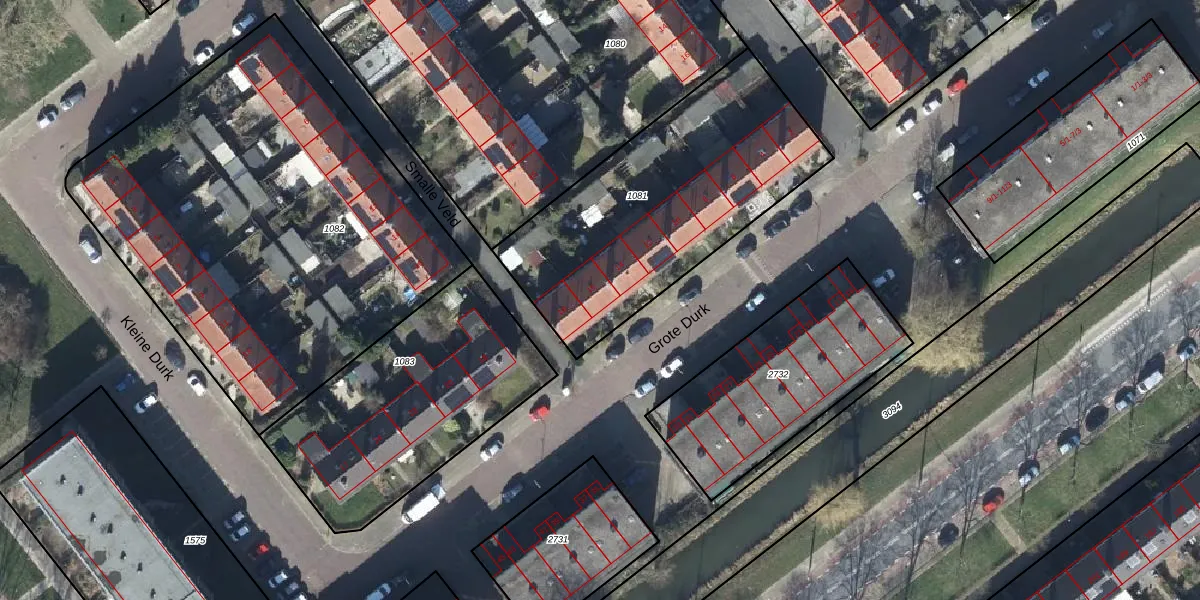 Het perceel waarop Grote Durk 16 staat heeft een oppervlakte van 1254 m². Dit is een zeer groot perceel. De perceeloppervlakte wordt geregistreerd door het Kadaster. Gedetailleerde informatie over de maten van dit perceel kunt u vinden in het rapport Kadastrale kaart met maatvoering van Grote Durk 16.