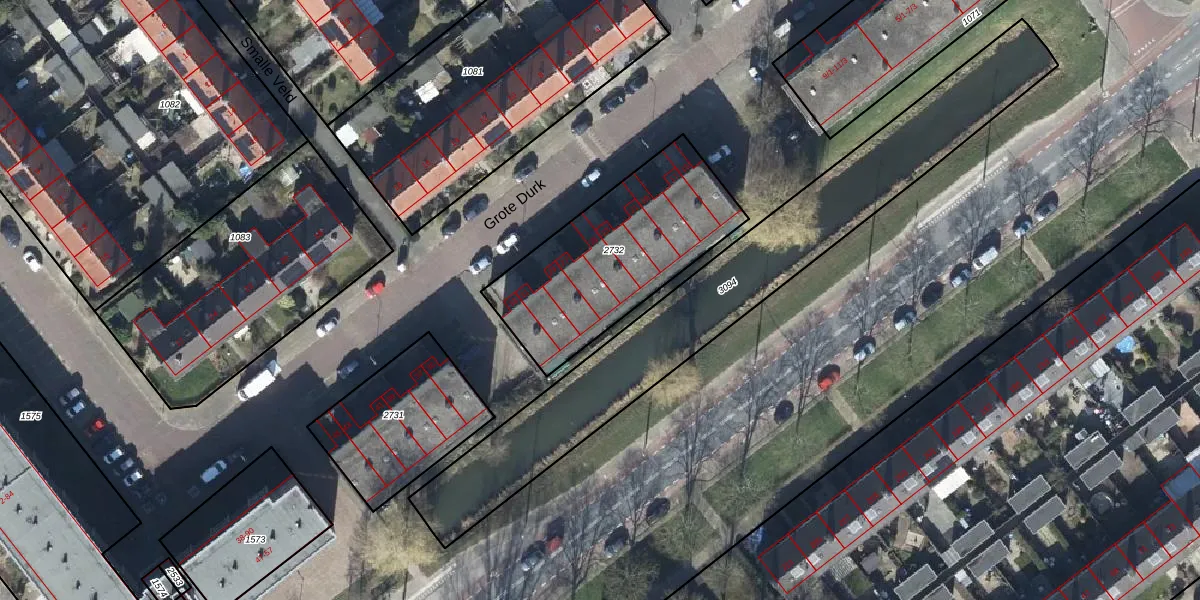 Het perceel waarop Grote Durk 27 staat heeft een oppervlakte van 745 m². Dit is een groot perceel. De perceeloppervlakte wordt geregistreerd door het Kadaster. Gedetailleerde informatie over de maten van dit perceel kunt u vinden in het rapport Kadastrale kaart met maatvoering van Grote Durk 27.