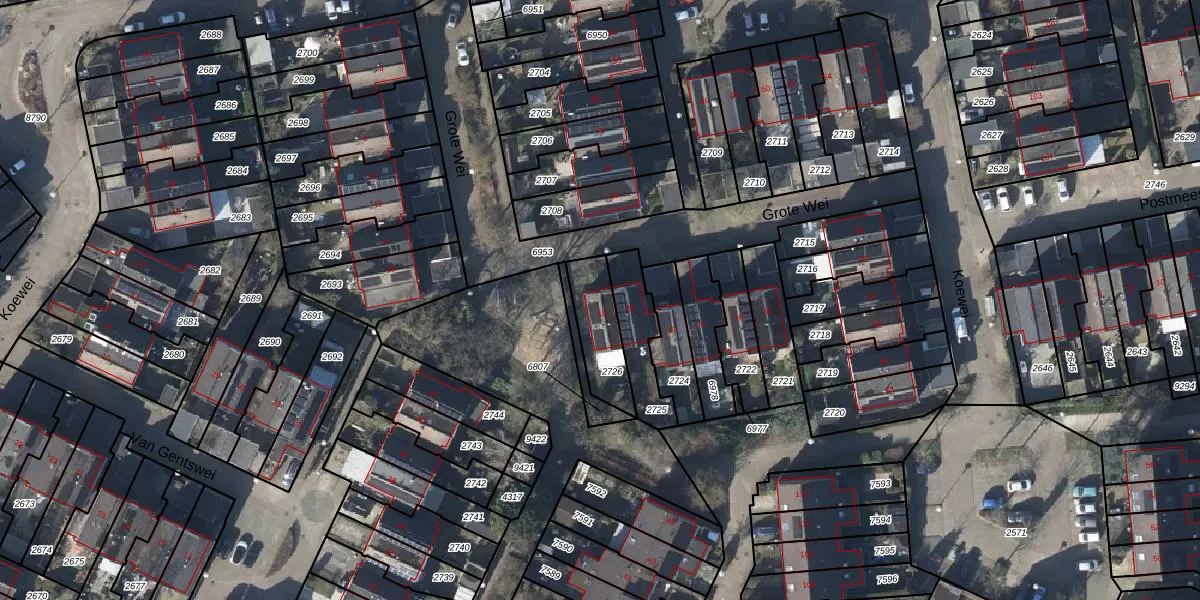 Gebruik de zoekbalk of klik op een perceel voor informatie over de adressen binnen dit perceel.