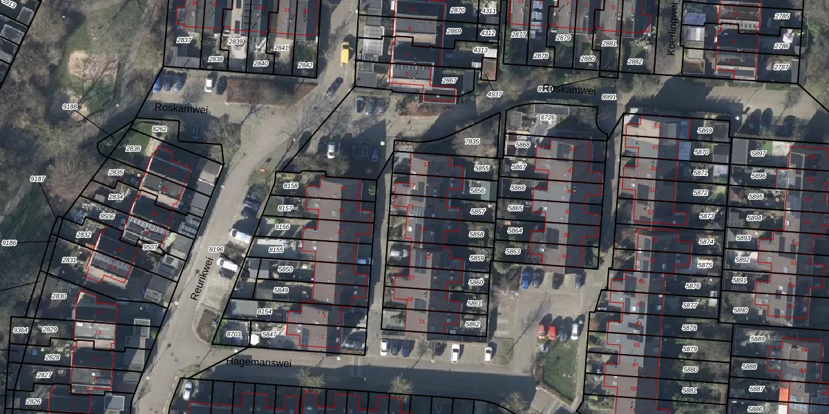Gebruik de zoekbalk of klik op een perceel voor informatie over de adressen binnen dit perceel.