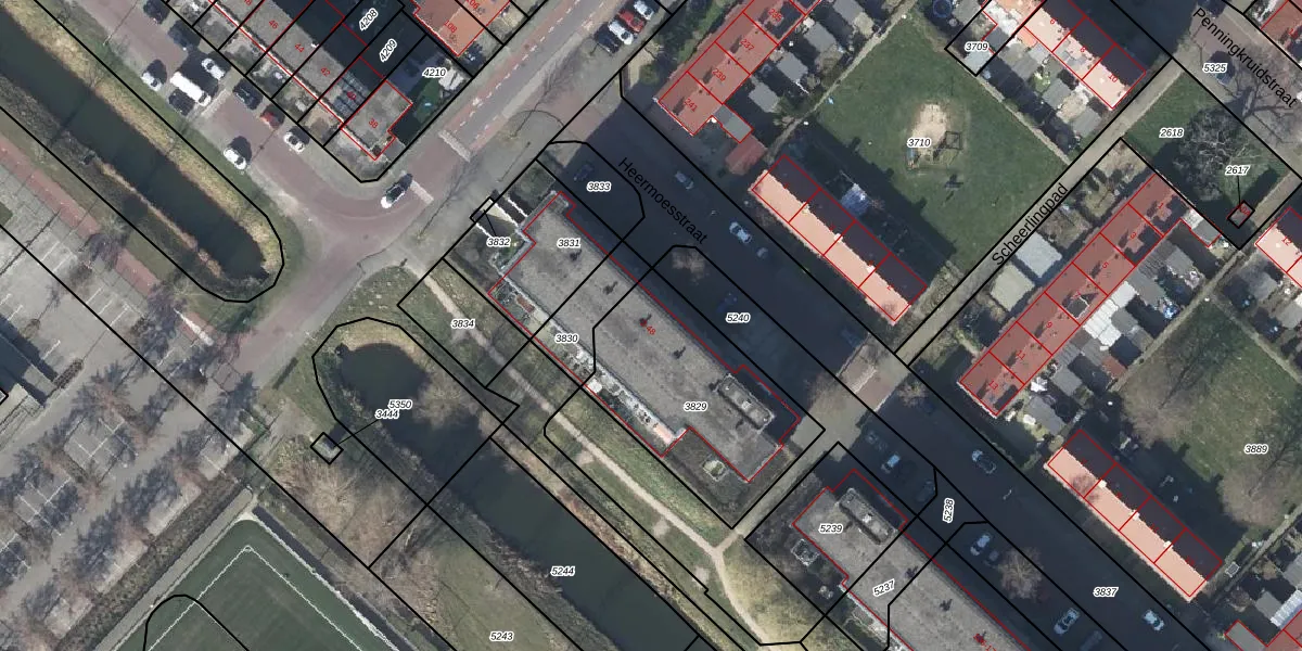 Het perceel waarop Heermoesstraat 34 staat heeft een oppervlakte van 730 m². Dit is een groot perceel. De perceeloppervlakte wordt geregistreerd door het Kadaster. Gedetailleerde informatie over de maten van dit perceel kunt u vinden in het rapport Kadastrale kaart met maatvoering van Heermoesstraat 34.