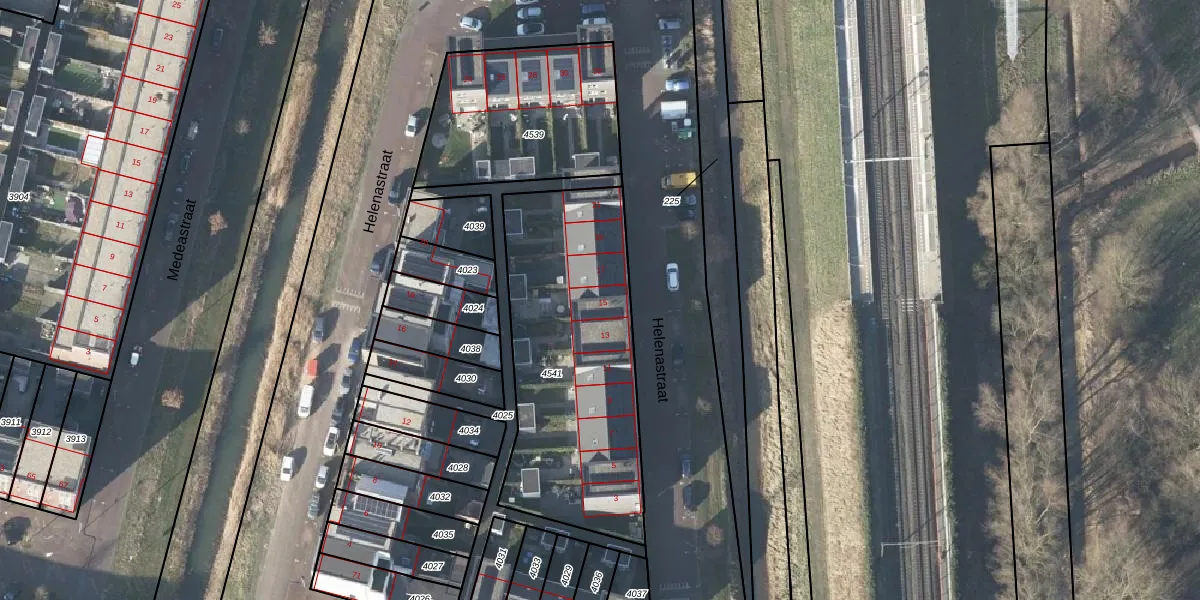 Helenastraat 15 is gelegen op kadastraal perceel AHM05AF4541. Deze kadastrale aanduiding is uniek en wordt gebruikt door het Kadaster om eigendomsrechten en andere zakelijke rechten vast te leggen. Het perceel maakt onderdeel uit van de kadastrale gemeente Arnhem.