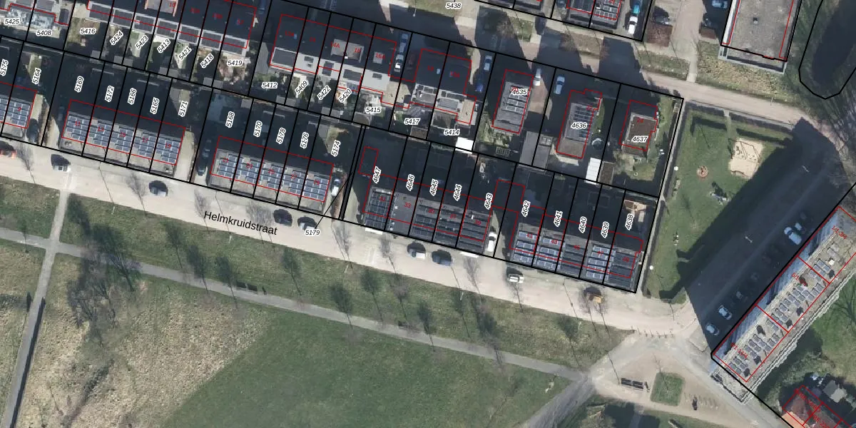 Het perceel waarop Helmkruidstraat 35 staat heeft een oppervlakte van 131 m². Dit is een middelgroot perceel. De perceeloppervlakte wordt geregistreerd door het Kadaster. Gedetailleerde informatie over de maten van dit perceel kunt u vinden in het rapport Kadastrale kaart met maatvoering van Helmkruidstraat 35.