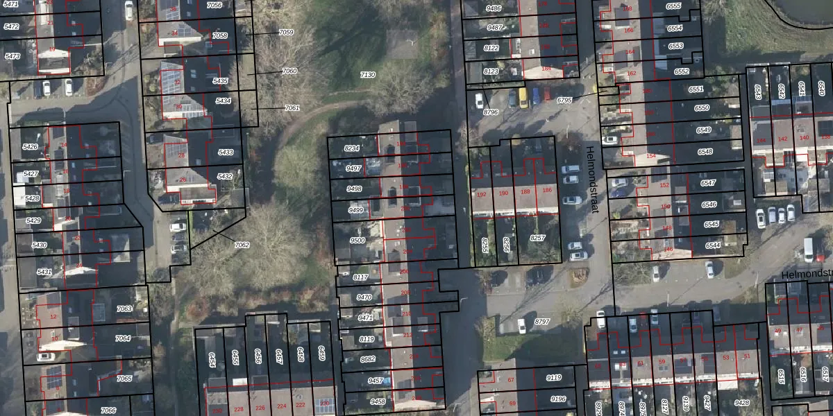 Helmondstraat 200 is gelegen op kadastraal perceel AHM03AC9499. Deze kadastrale aanduiding is uniek en wordt gebruikt door het Kadaster om eigendomsrechten en andere zakelijke rechten vast te leggen. Het perceel maakt onderdeel uit van de kadastrale gemeente Arnhem.