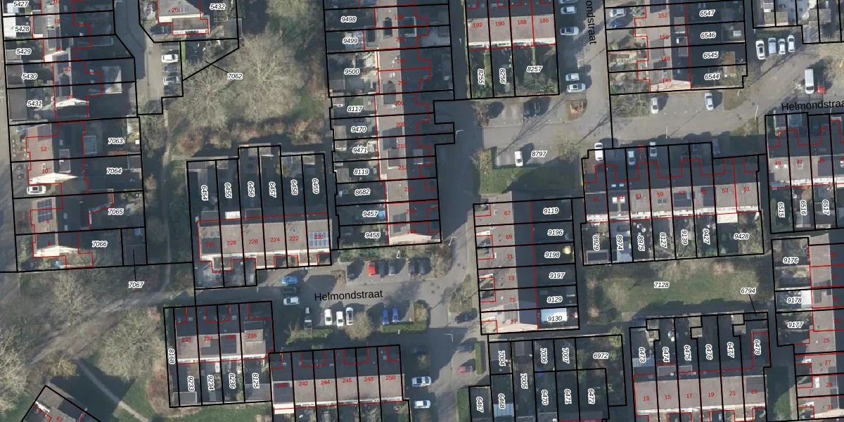 Het perceel waarop Helmondstraat 216 staat heeft een oppervlakte van 115 m². Dit is een middelgroot perceel. De perceeloppervlakte wordt geregistreerd door het Kadaster. Gedetailleerde informatie over de maten van dit perceel kunt u vinden in het rapport Kadastrale kaart met maatvoering van Helmondstraat 216.